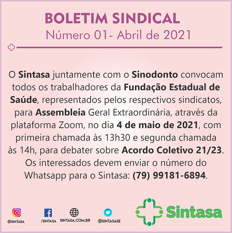 O presidente do Sindicato dos Trabalhadores na Área da Saúde do Estado de Sergipe (Sintasa), Augusto Couto, e o gerente Janderson Alves reuniram-se, na manhã desta quinta-feira, 11, com a diretoria da Fundação Estadual de Saúde (Funesa) para debater as tratativas do novo Acordo Coletivo de Trabalho, cuja validade do atual se encerra no final