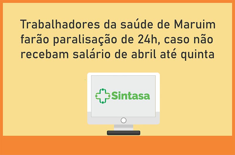 A direção do Sindicato dos Trabalhadores na Área da Saúde do Estado de Sergipe (Sintasa) protocolou ofícios, nesta quarta-feita, 26, na Prefeitura Municipal de Maruim e na Secretaria Municipal de Saúde, ressaltando o que foi deliberado em assembleia virtual no dia 14 de maio. Na ocasião, ficou acordado que se até o quinto dia útil,