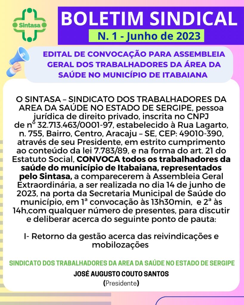 Convocação para os trabalhadores de Itabaiana 08/06/2023 Convocação para os trabalhadores de Itabaiana Read More »