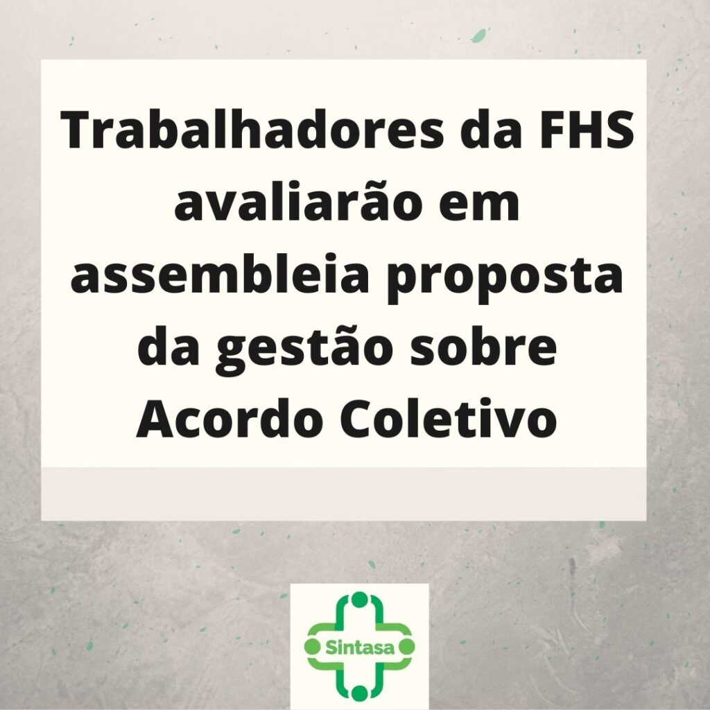 De acordo com o gerente do Sintasa, os trabalhadores na FHS decidirão se vão acatar ou não a proposta da gestão durante a assembleia geral extraordinária que foi marcada para a próxima sexta-feira, 1 de abril, com primeira chamada às 7h e segunda chamada às 7h30min, na sede do sindicato.