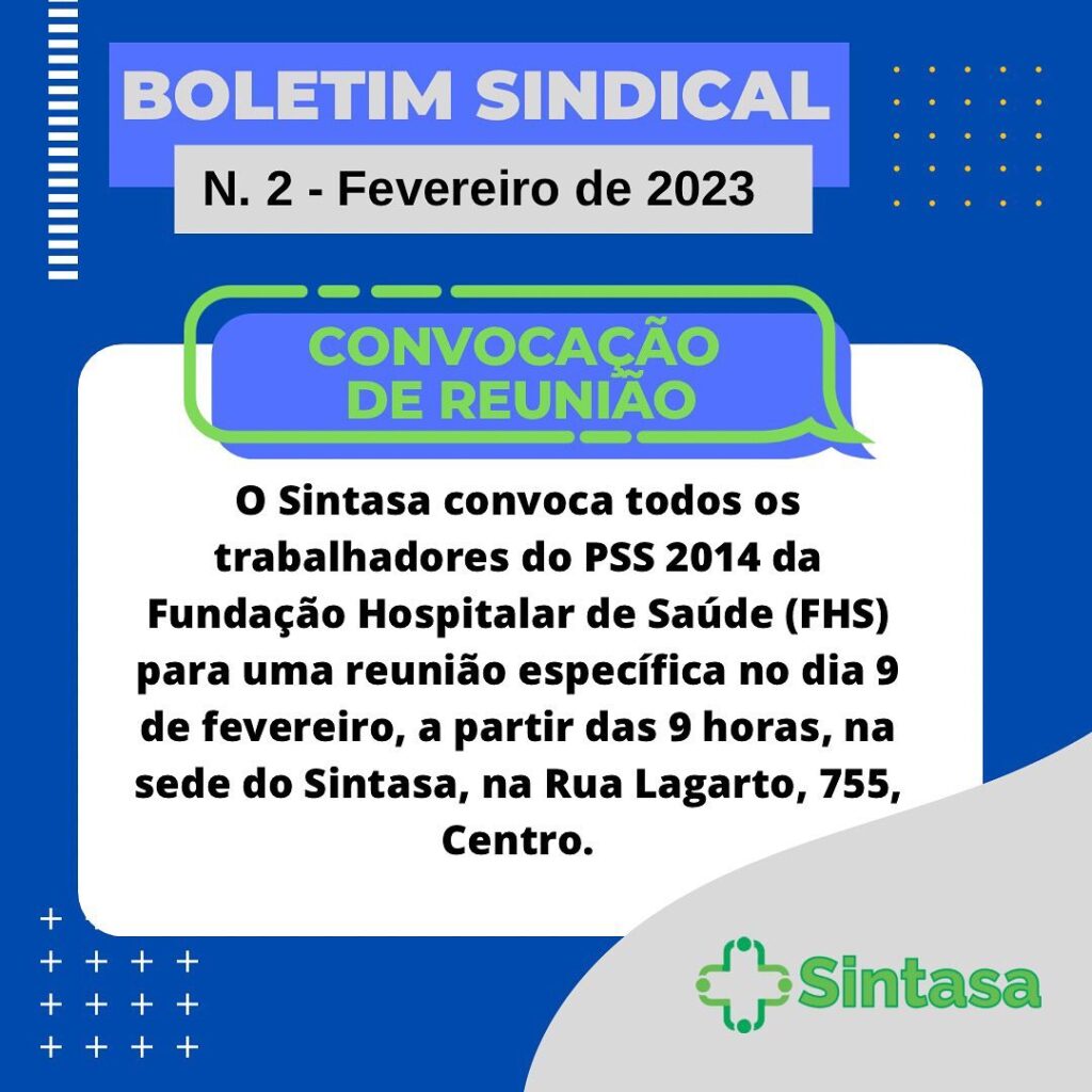 Convocação de Assembleia para trabalhadores do PSS-2014 da FHS 02/02/2023 / Notícias / By Ascom/Sintasa