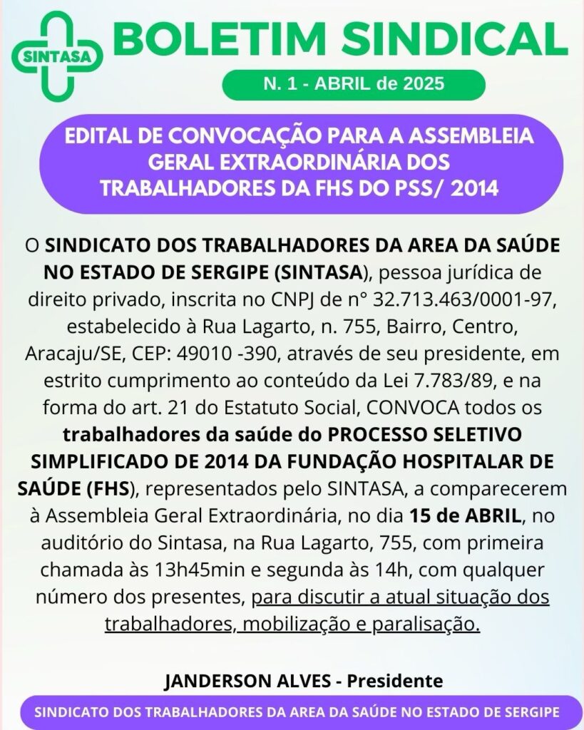 Edital de convocação dos trabalhadores da FHS do PSS/2024