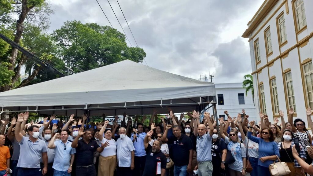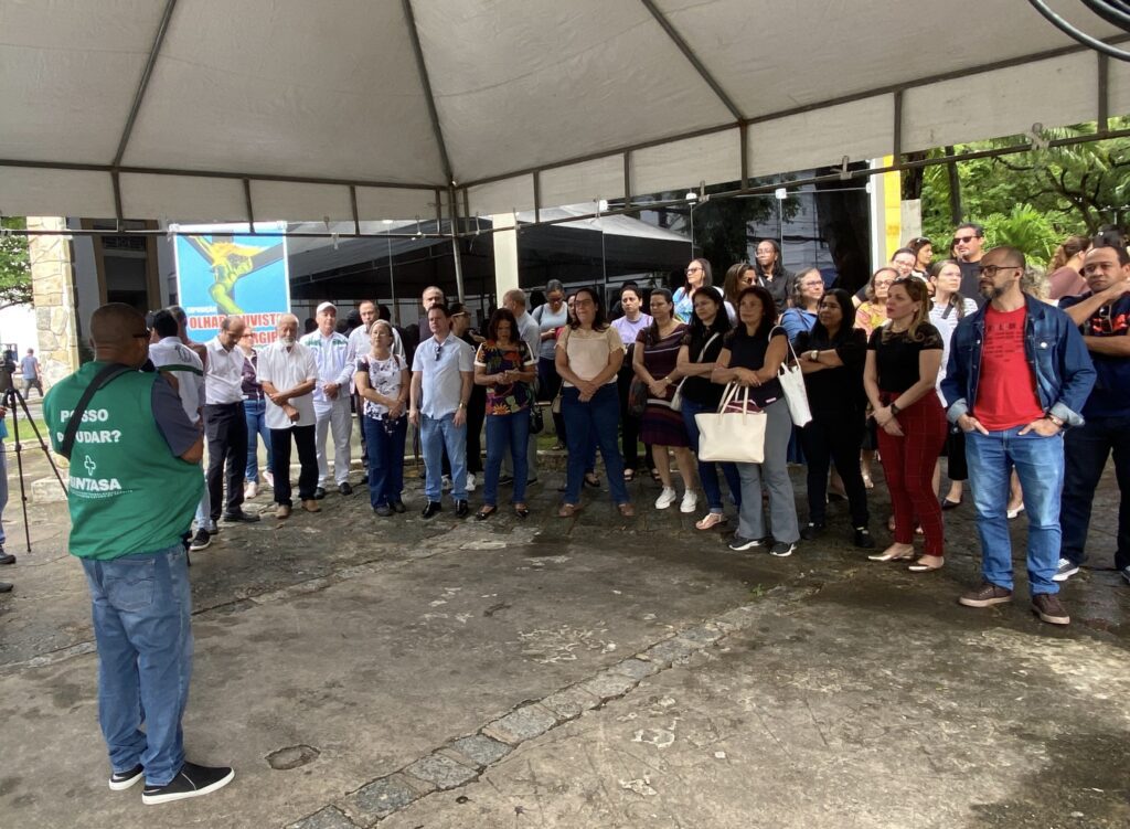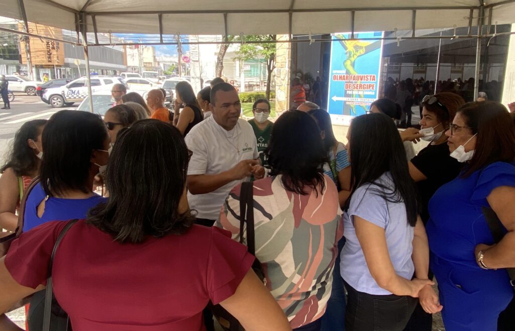 O Sindicato dos Trabalhadores da Área da Saúde do Estado de Sergipe (Sintasa) se uniu, na manhã desta quarta-feira, 9, a outras entidades representativas na Assembleia Unificada dos Trabalhadores Estatutários do município de Aracaju, realizada em frente à Câmara Municipal de Vereadores. A manifestação teve como objetivo pressionar os parlamentares a se posicionarem contra a proposta de Reforma da Previdência enviada pela prefeita Emília Côrrea, classificada pelos servidores como um “pacote de maldades”.