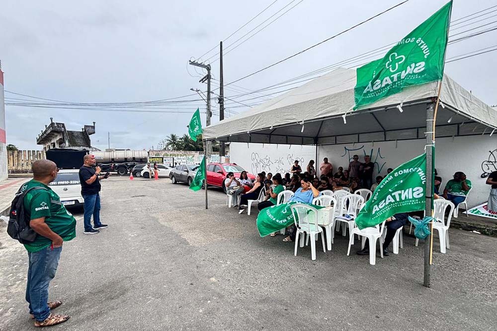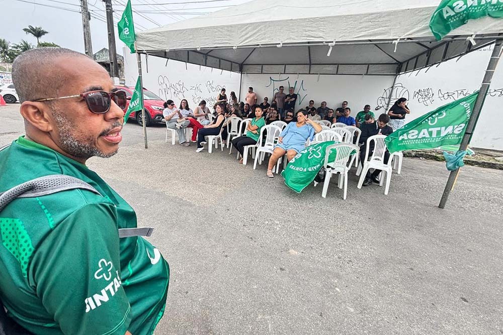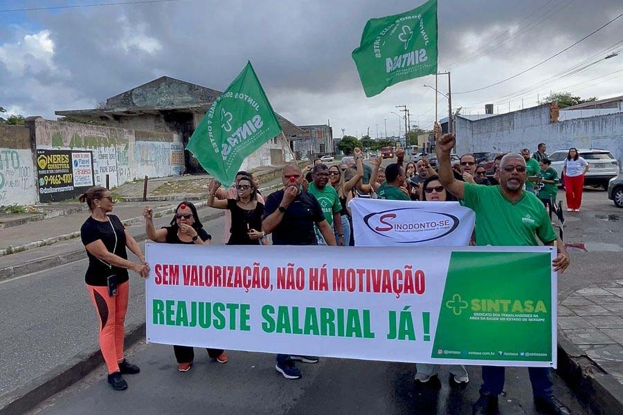 Em assembleia realizada nesta quarta-feira (1º), durante ato de paralisação de 24 horas na porta da Fundação Estadual de Saúde (FUNESA), os trabalhadores representados pelo Sindicato dos Trabalhadores na Área da Saúde de Sergipe (Sintasa) e pelo Sindicato dos Cirurgiões Dentistas de Sergipe (Sinodonto) rejeitaram a oferta encaminhada pela fundação — manutenção do auxílio-alimentação e reajuste salarial de 5% — e aprovaram uma nova contraproposta. As entidades reivindicam 10% de reajuste, em isonomia com os servidores estatutários já contemplados desde agosto por projeto de lei do Governo do Estado, e fixam o valor de R$ 1.000 para o auxílio-alimentação.