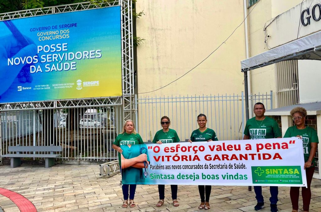 Durante a solenidade, o Sindicato dos Trabalhadores na Área da Saúde do Estado de Sergipe (Sintasa) esteve presente na recepção aos concursados. Representantes da entidade realizaram a distribuição de panfletos informativos, deram as boas-vindas aos novos servidores e apresentaram o papel do sindicato na defesa da categoria.